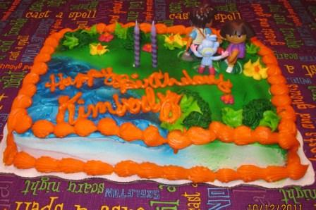 She had a Dora cake. She loves Dora although we don't watch it much since I never can remember when it is on.